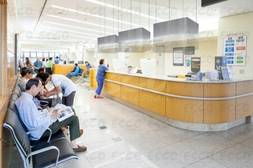 Registration, reception, cashier and checkout counters