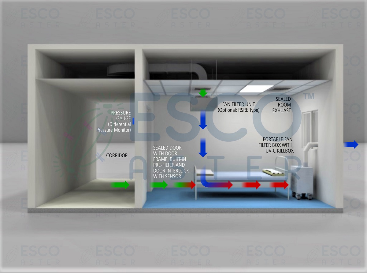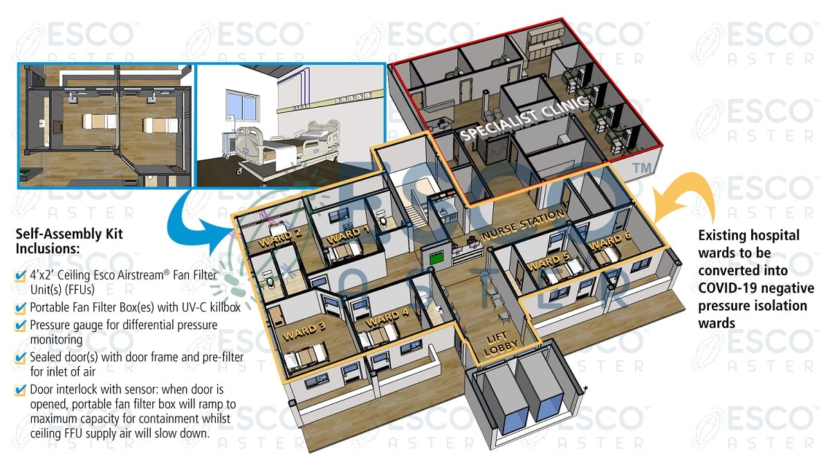 Esco also offers rapidly deployable Self-Assembly Kit, one of its products under the Esco Aster Airborne Infection Isolation Room (AIIR) Technology, which comes with portable fan filter box(es) with UV-C kill box and other components that can be used to convert pre-existing wards or rooms into an improvised negatively pressured one.
