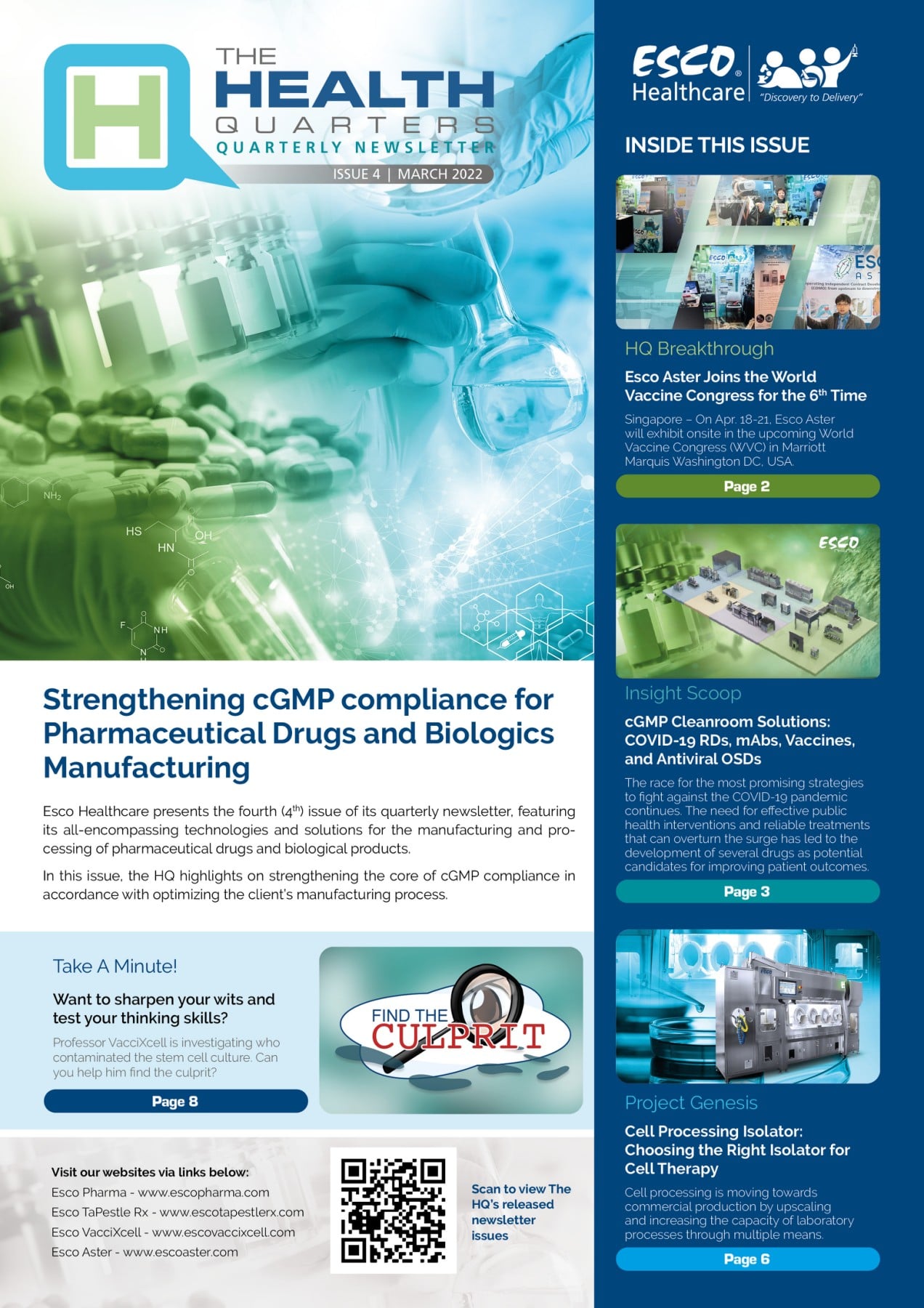 › Articles › The Health Quarters: Strengthening cGMP compliance for Pharmaceutical Drugs and Biologics Manufacturing (Issue 4, March 2022)