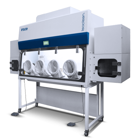 The Isoclean® Healthcare Platform Isolator (HPI-G3) facilitates containment while enabling aseptic processing in an ISO Class 5 per ISO-14644-1 (Grade A per EU GMP) environment. The safe change design system allows the replacement of gloves during in-process operation of the equipment.